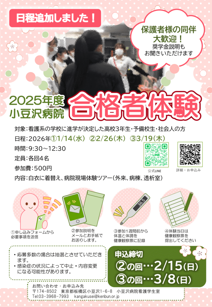 〒174-8502 東京都板橋区小豆沢1-6-8 小豆沢病院 看護学生室