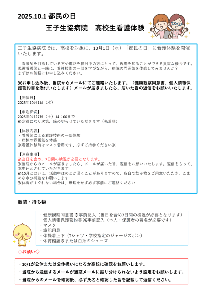 当院と同じく「民医連」という組織に属している「王子生協病院」の看護体験をご紹介します!