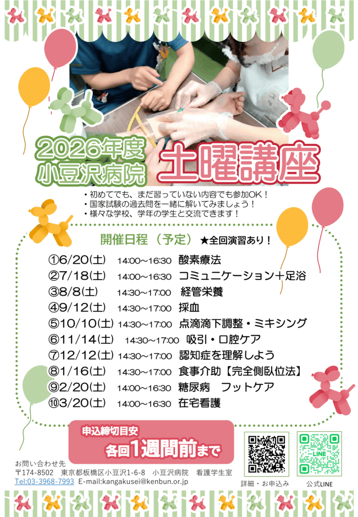 当院では、看護学生の方向け学習講座「土曜講座」を開催しています!