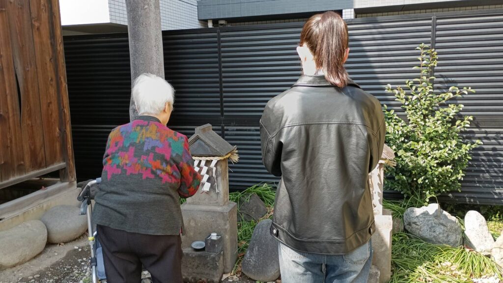 利用者さん方に付き添って、近くの神社まで桜を見に行きました。