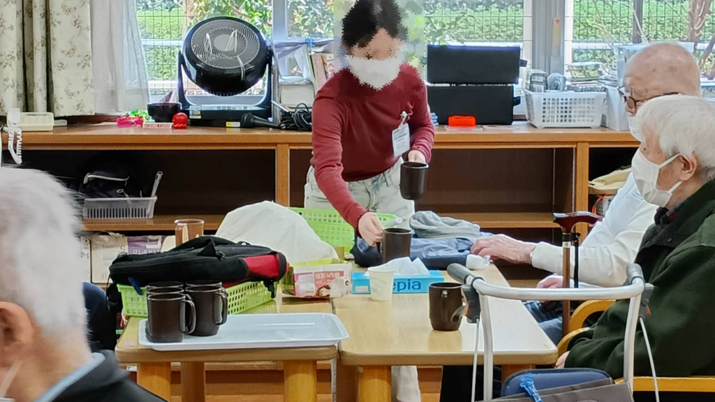 デイサービスに来られているお年寄りの方のお話相手や、おやつやお茶の準備、お帰り支度のお手伝いをしてもらいました。